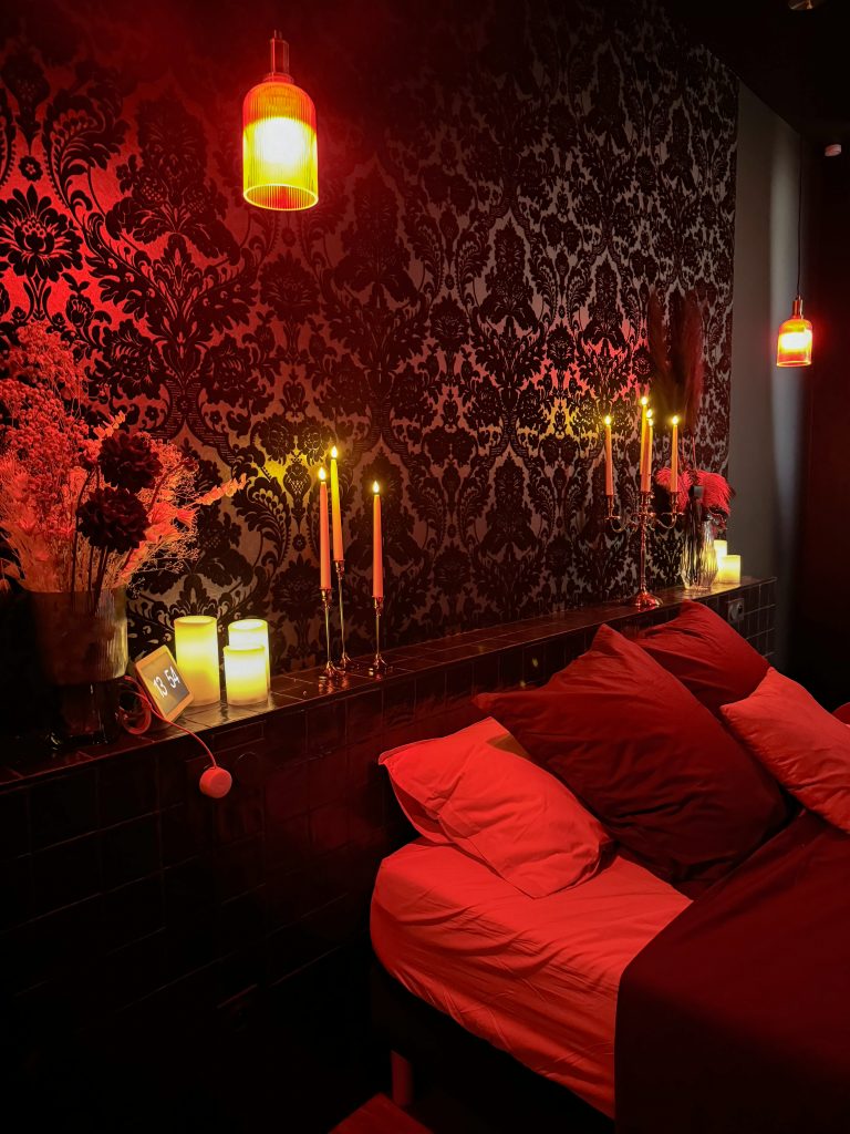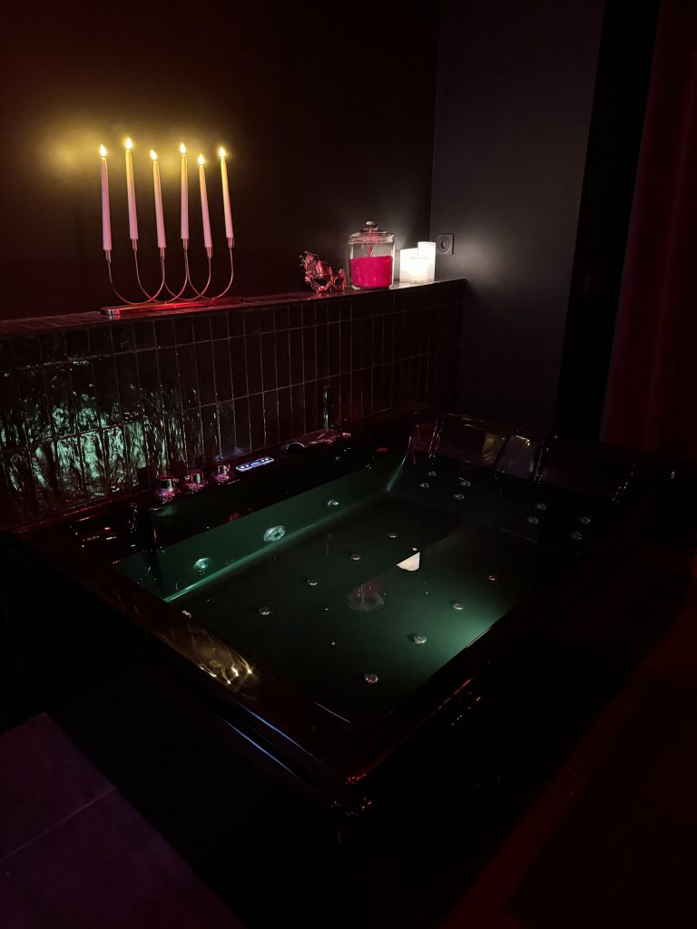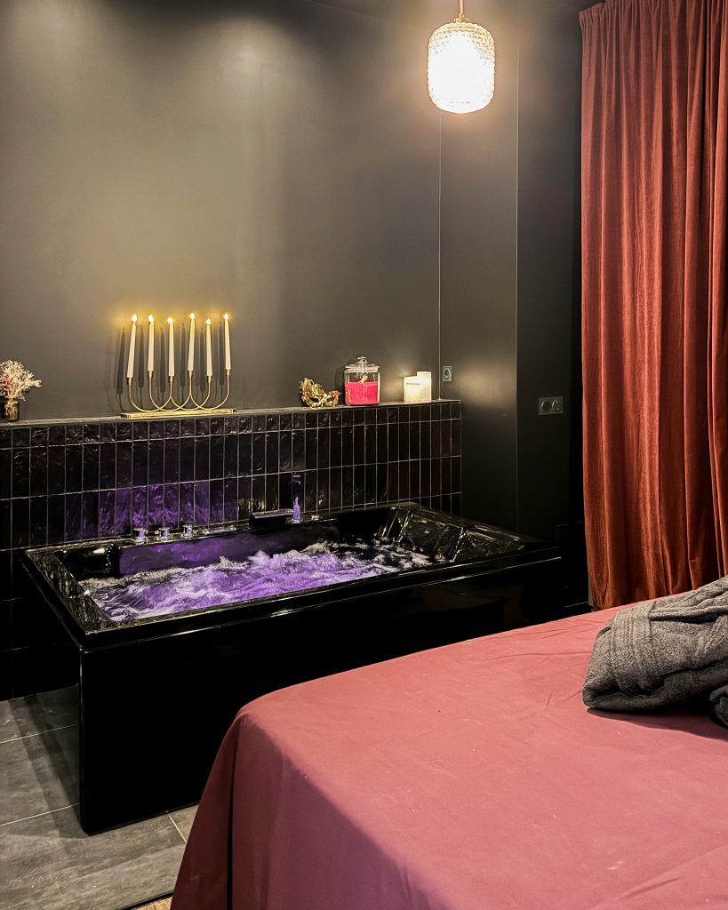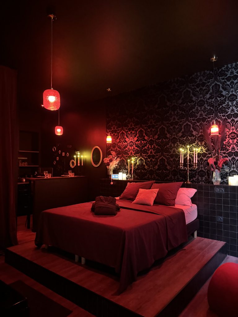 Une love room insolite où chaque détail y est pensé pour permettre aux futurs clients d’y vivre une expérience immersive : matières audacieuses, lumières changeantes, ambiance feutrée.