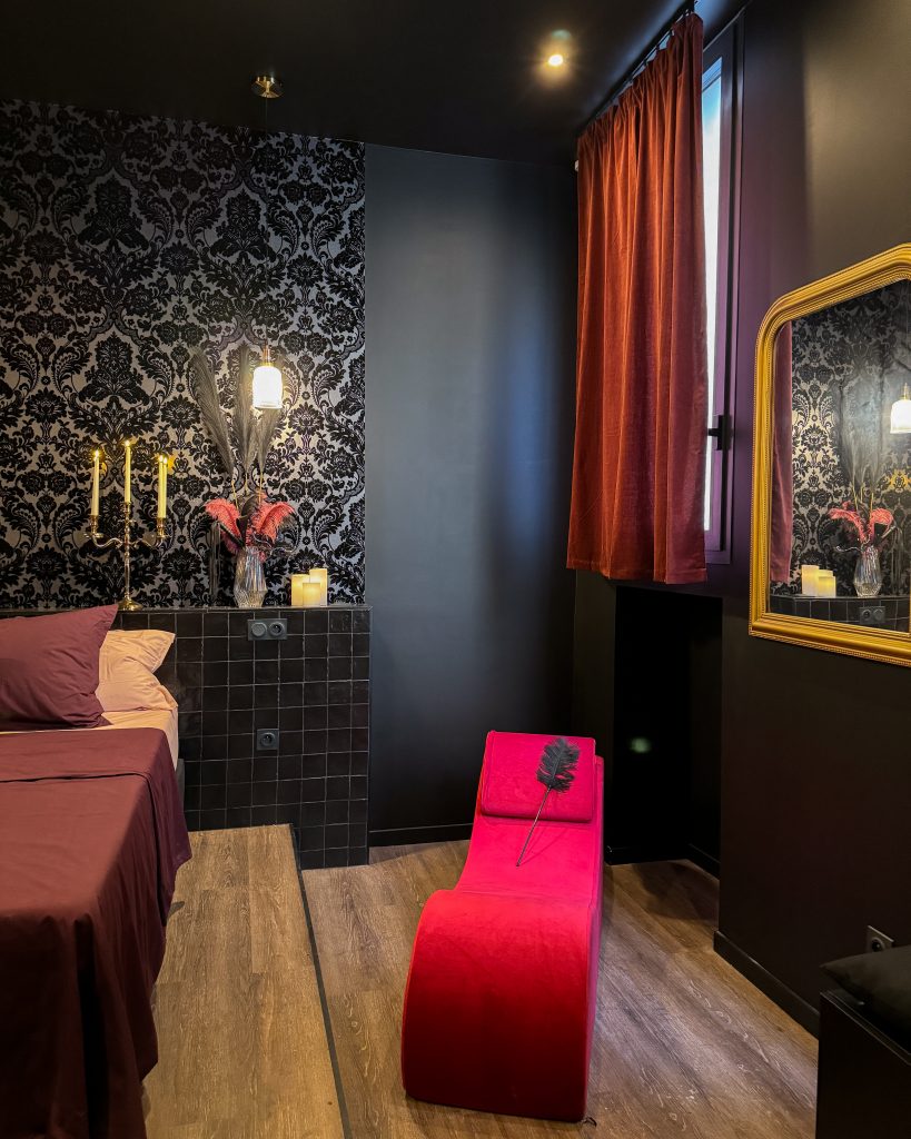 Une love room aux airs de boudoir feutré, chic et raffiné.