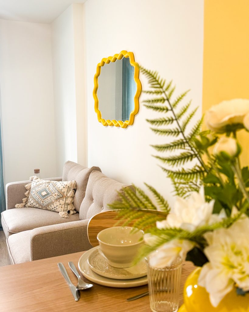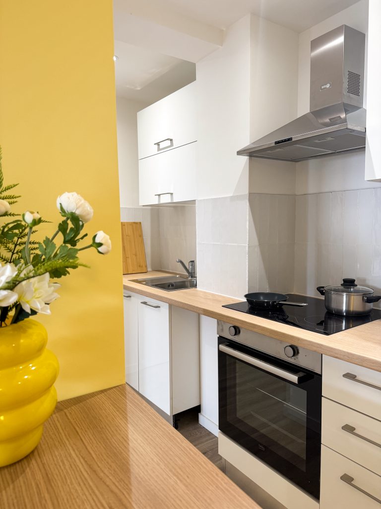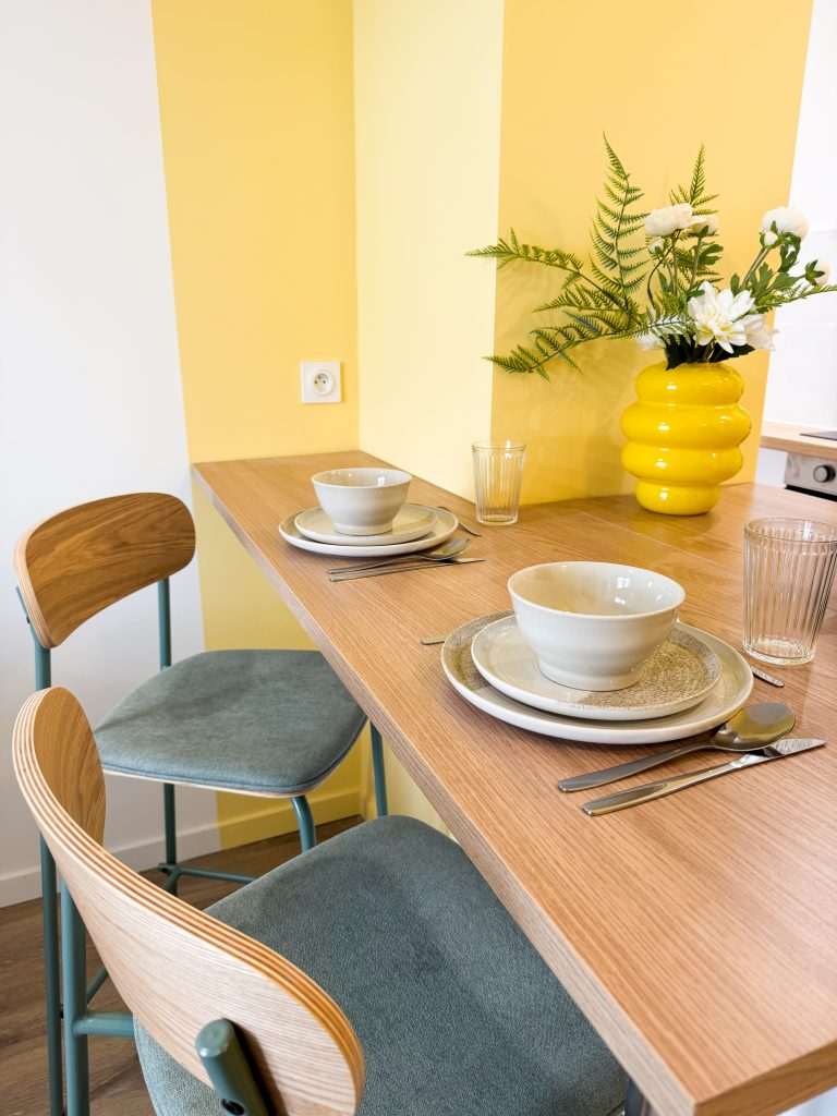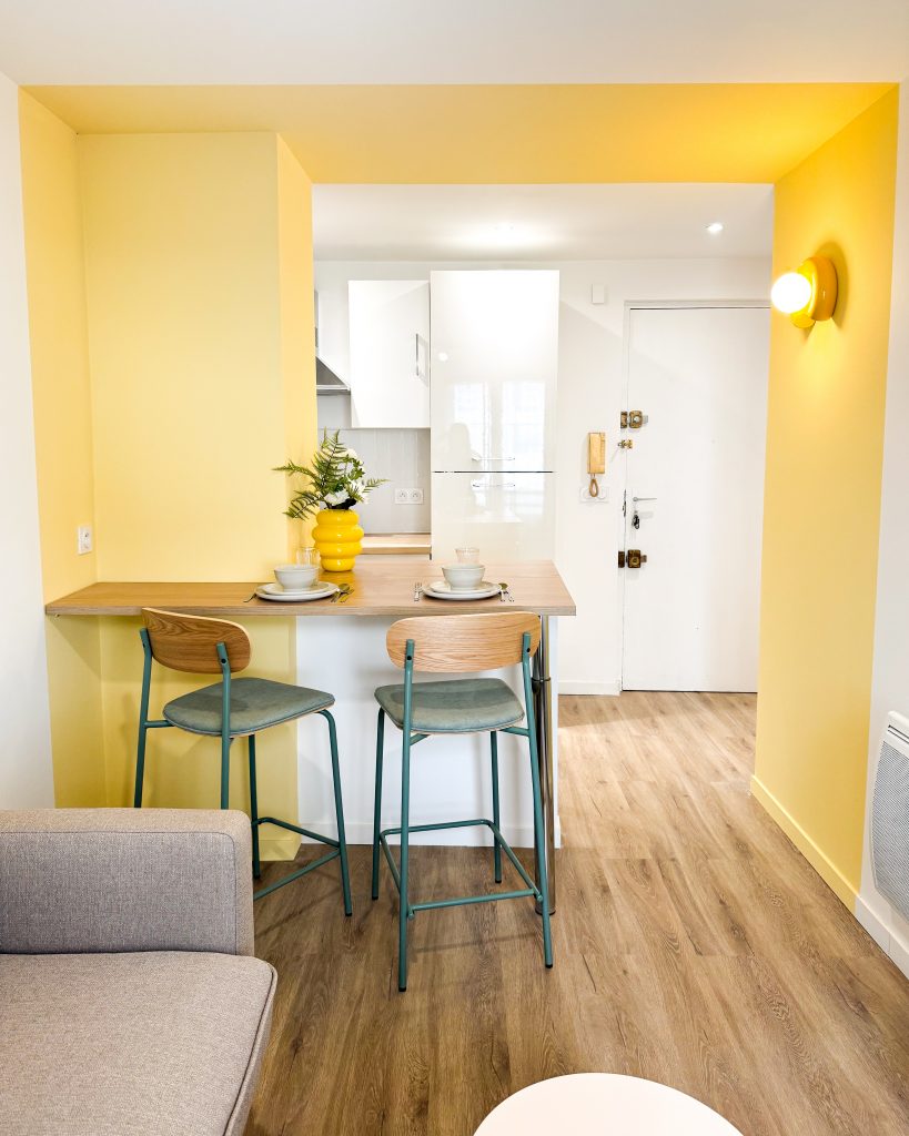 Une ambiance joyeuse et colorée a été amené à cet appartement pour le rendre plein de vie pour ses futurs locataires.