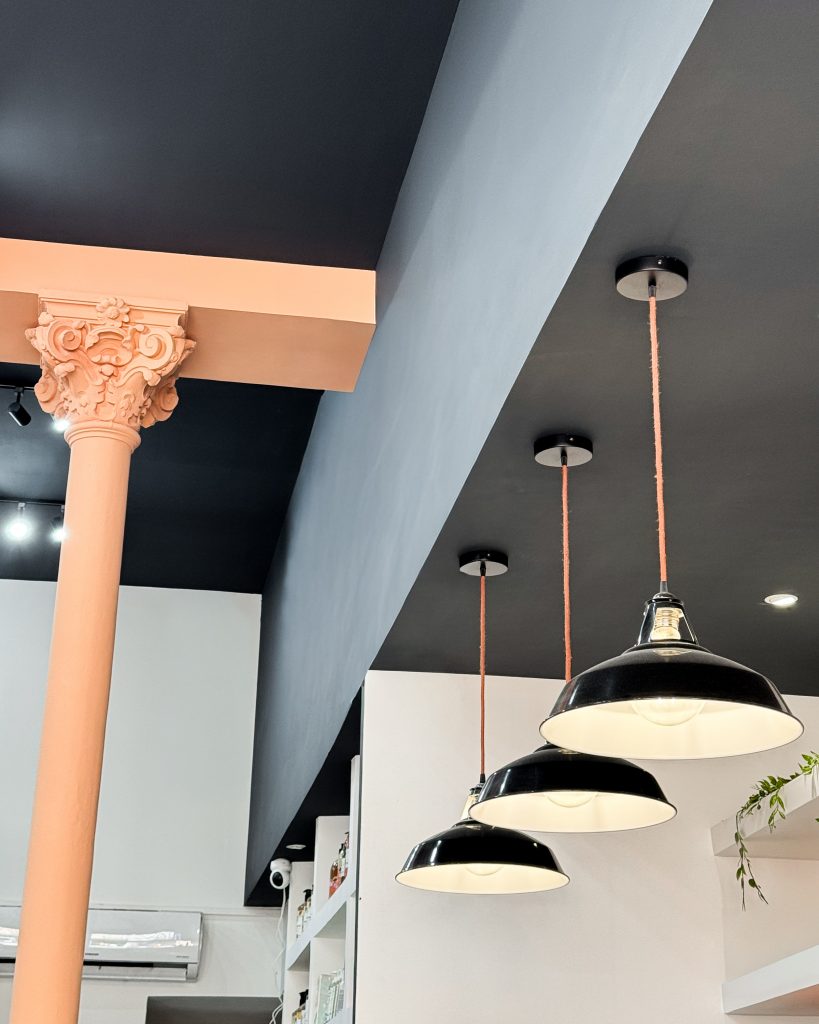 Une rénovation de pharmacie, intérieure et extérieure, douce et raffinée.